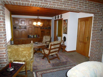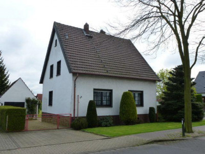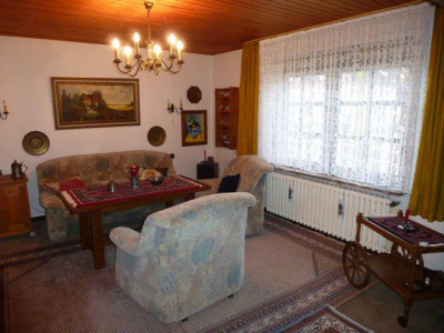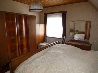 Baujahr 1952, freistehender 1-geschossiger Baukörper mit ausgebautem Satteldach, konventionelle Massivbauweise, EG leicht angehoben, daher Kellergeschoss mit etwas Tageslicht, Fassade geputzt und gestrichen, massiv errichtete Garage mit angebautem Geräteschuppen auf der linken Grundstücksgrenze und kleiner überdachter Terrasse.Das Haus hat eine Wohnfläche von ca. 114 m² und ist wie folgt aufgeteilt:Erdgeschoss - Eingangsdiele mit Treppenaufgang, Flur, Gäste-WC mit Dusche, Wohnküche mit kleinem Essplatz, zwei Wohnräume von jeweils 16 m², kleiner ArbeitsraumObergeschoss - Flur, Wannebad/WC, zwei Kinderzimmer, Elternschlafzimmer mit separatem Ankleideraum