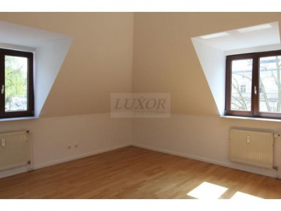 Die charmante 3-Zimmer-Wohnung liegt im Dachgeschoss einer sanierten Altbauvilla. Dank des hohen Drempels sind die Schrägen kaum spürbar. In der hellen und freundlichen Wohnebene finden Sie eine komplett eingerichtete, weiße Einbauküche mit angrenzendem Abstellraum, ein Badezimmer mit Wanne, Dusche und WC, ein separates Gäste-WC, 2 Schlafzimmer (eines davon mit Einbauschrank), sowie einen hellen, rund 50 m² großen Wohnbereich.