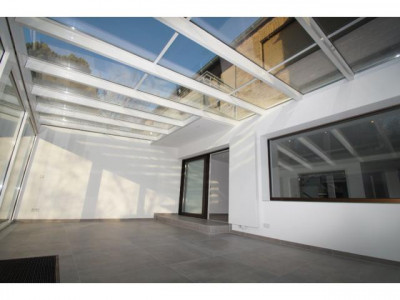 Ein eindrucksvolles Wohnhaus in perfekt modernisiertem Zustand. Gerade fertig geworden, bieten wir Ihnen dieses Wohlfühlhaus zum Erstbezug an. Es erwartet Sie eine trendige und moderne Ausstattung, die auch hohen Wohnansprüchen absolut entspricht. Von außen eher unscheinbar, werden Sie den "Wow-Effekt" nicht verbergen können! Vom eleganten Eingangsbereich können Sie durch die Glaselemente in der Diele durch das Wohnzimmer und den Wintergarten in den Garten blicken, einfach toll!Durch den Anbau eines exklusiven voll verglasten Wintergarten mit breiten Schiebetür-Elementen, entstand hier ein seltenes schöner "Wohnen-Domizil". Die offen gestaltete Wohnküche, der übergroße Wohnraum mit herrlichen Trendfliesen und der lichtdurchflutete Wintergarten sind wirklich sehenswert. Im Obergeschoß gibt es drei Schlafräume, ausgelegt mit hochwertigem " Praxisboden" in Holzoptik. Eines davon mit Balkon zum Garten. Das exklusive Badezimmer mit 3 Tageslichtfenstern ist top modern gestaltet: eine große Badewanne, bodentiefe Glasdusche, Deckenspots, etc..Auch der neue Spitzbodenausbau ist eine Augenweide! Hell, modern, großzügig! Und die großflächigen Velux-Fenster sind selbstverständlich mit einen Fernbedienung zu verdunkeln! Ein Haus zum sofortigen Einzug, sogar die stylischen Treppenhaus-Strahler sind schon montiert.Nun zum Keller: perfekt, wie auch zu erwarten! Vollständig gefliest, teils mit indirekter Beleuchtung. Eine weitere Dusche installiert, ein schöner Hauswirtschaftsraum! Alles perfekt für Hobby, Arbeiten....Ein tolles Understatement-Haus mit einem netten Südwest-Garten. Unglaublich, was die Eigentümer aus diesem Einfamilien-Reihenhaus gemacht haben!! Hier wurden offensichtlich keine Kosten gespart.