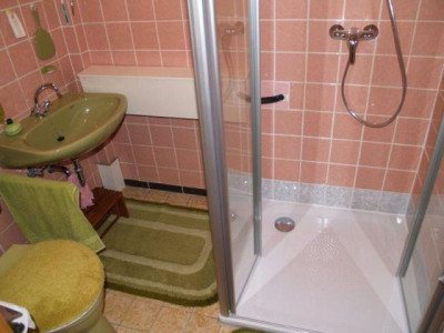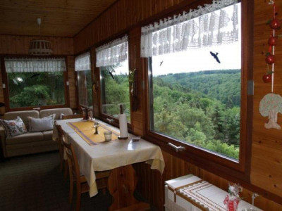Im Obergeschoss des Ferienhauses befinden sich ein Vorraum mit einem Windfang, das Wohn- und Esszimmer, in welchem ein Kamin steht und eine kleine Einbauküche und der Wintergarten mit herrlichem Fernblick.Im Erdgeschoss befindet sich ein großzügiges Schlafzimmer, sowie ein Tageslichtbad mit Dusche und der Ausgang zum Garten mit der Terrasse.Das Ferienhaus ist mit einer Nachtspeicherheizung ausgestattet. Dadurch ist das Ferienhaus ganzjährig bewohnbar.
