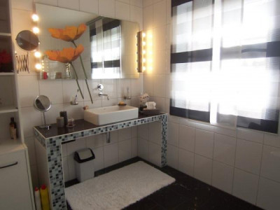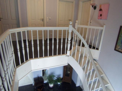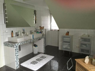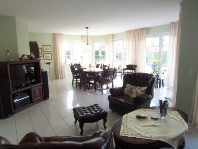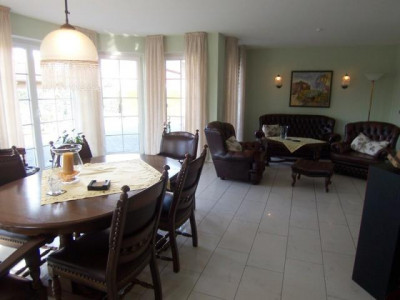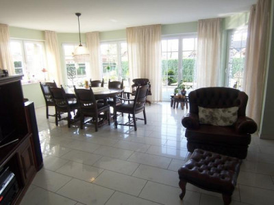 Eine echte Augenweide ist dieser sehr exklusiv ausgestattete Doppelwinkelwalmdachbungalow! Die Immobilie besticht durch optik, Lage und den perfekt gepflegten Zustand. Klasse Raumaufteilung, durch das im Erdgeschoss befindliche Schlafzimmer sowie das direkt angrenzende Duschbad ist das Wohnen auf einer Ebene gewährleistet. Im Dielen bzw. Eingangsbereich befindet sich eine sehr ansprechende Galerie, die dazugehörige Treppenanlage ist ein weiteres Highlight dieser Immobilie. Das Wohn/Esszimmer verfügt über einen optisch reizvoll in Szene gesetzten Erkerbereich. Durch die bodentiefen Fensterelemente betritt man den geschmackvoll angelegten Garten bzw. Terrassenbereich. Im Dachgeschoss befinden sich drei Schlafzimmer, ein weiteres komf. Duschbad sowie ein sep. WC. Die Galerie ist ein echter Blickfang. Die Rollos im gesamten Objekt wurden mit Elektromotoren ausgestattet (außer Veluxfenster, manuell).