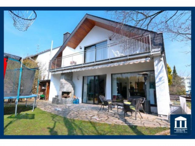 Dieses freistehende und großzügig geschnittene Einfamilienhaus befindet sich in einem ruhigen Wohngebiet von Eschborn.Trotz seiner Top-Lage sind Einkaufsmöglichkeiten nur wenige Gehminuten entfernt.Das im Jahre 1974 in konventioneller Bauweise errichtete Einfamilienhaus steht auf einem nach Süd-Westen ausgerichteten Grundstück in absolut ruhiger Lage.Die Wohnfläche erstreckt sich großzügig über drei Ebenen und verteilt sich auf 6 Zimmer. Sehr hervorzuheben ist der offene, repräsentative Wohn-/Esszimmerbereich mit Kamin. Des Weiteren befinden sich im EG ein Arbeitszimmer und eine große Küche, sowie ein Gäste-WC.Im 1.OG gibt es neben zwei Kinderzimmern und dem Tageslichtbad, das Elternschlafzimmer. Im UG befindet sich eine Einliegerwohnung mit Duschbad, ein großer Hobbyraum, Sauna und die Kellerräume.Raumaufteilung:UG+ 1 Zi.-Einliegerwohnung mit Duschbad+ Hobbyraum+ Sauna+ Heizungsraum+ WaschraumEG+ Ein großes Wohn- Esszimmer mit ca. 74 m²+ Küche mit Einbauküche+ Arbeitszimmer+ Gäste WC+ Flur+ Große Terrasse mit Aussenkamin+ GartenOG+ Ein Elternschlafzimmer mit Balkon+ Zwei Kinderzimmer+ Tageslichtbad mit Badewanne und DuscheZur Ausstattung gehören unter anderem:+ Parkettboden in allen Wohnräumen+ Fußbodenheizung+ Alarmanlage+ Videosprechanlage+ Garage mit Carport+ Garten+ Außenkamin+ Absolut ruhige Lage