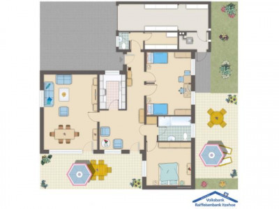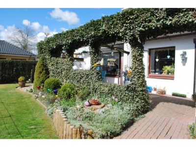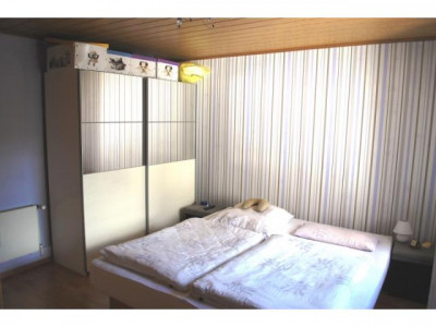 In ruhiger Sackgassenlage in Dägeling befindet sich dieser, 1979 erbaute, 115 m² große Flachdach Bungalow. Das Objekt steht auf einem 536 m² großen Grundstück und teilt sich auf 3 Zimmer, Essbereich, Badezimmer, Gäste WC und Abstellraum. Das Kinderzimmer kann bei Bedarf wieder zu 2 Zimmern gemacht werden. Das helle Wohnzimmer besticht durch einen Zugang zur Terrasse und einer Größe von knapp 32 m². Durch einen 3 Jahre alten Pelletofen kann sowohl das Wohnzimmer als auch Essbereich und Flur zusätzlich beheizt werden. Ebenfalls zum Objekt gehören ein Carport, ein Stellplatz und zwei Terrassen.Es besteht außerdem die Möglichkeit ein Stockwerk auf das Flachdach zu setzen. Statische Berechnungen hierfür liegen bereits vor.Überzeugen Sie sich gerne selbst bei einer Besichtigung.