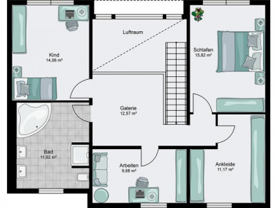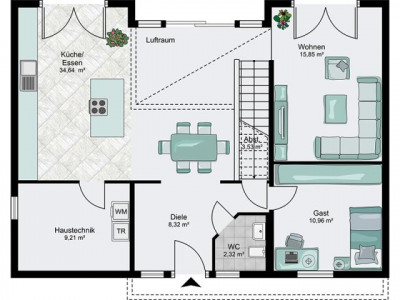 Traumhaus im Bauhausstil - moderne Architektur mit individueller Grundrißanpassung, viel Glas und Licht charakterisieren dieses moderne Eigenheim.Im Erdgeschoss sind hier eine offene Küche in Kombination mit dem Eßbereich an der großen nach Süden ausgerichteten Terrasse angeordnet.Selbstverständlich ist ein Gäste WC und der Haustechnik bzw. Hauswirtschaftsraum vorgesehen. Unter der geschlossenen Treppe ist ein Abstellraum möglich.Das Obergeschoss mit einem Elternschlafzimmer mit Masterbad und2 Kinderzimmer von je 16.00m² mit einem Junior-Bad bilden den Wohnbereich im Obergeschoss.