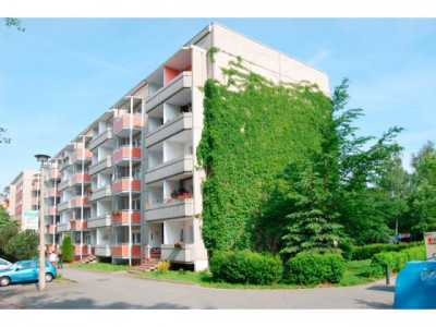 Die Wohnung befindet sich in einem sanierten Plattenbau mit insgesamt fünf Wohnetagen, auf denen jeweils drei kleine Wohnungen vorhanden sind. Das Haus ist unterkellert. Abstellmöglichkeiten für Pkws sind in ausreichender Zahl kostenlos vorm Haus vorhanden. Auf der Balkonseite schauen Sie direkt ins Grüne.