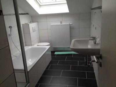 In einem Wohn- und Geschäftshaus ist die Wohnung im Dachgeschoss, mit ca. 125m² Wohnfläche, nach einer Renovierung / Modernisierung erstmalig wieder zur vermieten.Das auf einem 802m² großen Grundstück, um ca. 1976 gebaute Haus, wurde sehr aufwendig saniert und modernisiert. U.a. wurden Elektrik, Steckdosen, Lichtschalter erneuert; hochwertige Wand- und Bodenbeläge verlegt; Decken und Wände weiß tapeziert; eine neue Gas-Zentralheizung mit kontrollierter Wohnraumlüftung mit Wärmerückgewinnung installiert, Fenster mit 3-fach Verglasung erneuert; Balkone und Terrasse saniert, ein Vollwärmeschutz angebracht. Energieausweis für Wohngebäude liegt vor; Endenergiebedarf 60,1 kWh/(m²*a); Baujahr der Anlagetechnik 2013/2014; Befeuerungsart Gas; Warmwasser enthalten nein; Die Wohnung ist aufgeteilt in großzügiger Wohn- und Essbereich, Küche, Flur / Diele, Tageslichtbad mit Wanne und Dusche, ein Schlafzimmer mit Balkon, 2 Kinderzimmer, großer und verglaster Dachbalkon.Zur Wohnung gehört ein Kellerraum. Die Waschküche, mit eigenem Anschluss für Waschmaschine und Trockner, steht zur gemeinsamen Nutzung zur Verfügung.