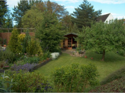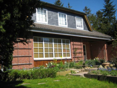 Der voll unterkellerte Walmdachbungalow mit Einliegerwohnung im Dachgeschoss eignet sich idealerweise auch für 2 Generationen. Im Erdgeschoss befinden sich Wohnzimmer mit grds. Kaminanschlussmöglichkeit und 2 weitere Zimmer, Küche mit älterer Küchenzeile sowie Bad mit Dusche, Wanne und WC. Aus dem Wohnzimmer und der Küche besteht ein Zugang zur teilweise überdachten Südterrasse und zum Grundstück. Die Wohnfläche beträgt ca. 92 m². Die Einliegerwohnung im Dachgeschoss verfügt über Wohnzimmer, 2 weitere Zimmer, Küche mit Einbauküche sowie Bad mit Dusche, Wanne und WC. Die Wohnfläche beträgt ca. 58 m². Im voll unterkellerten Bereich sind ein Flur mit sep.Außenzugang, 4 Kellerräume sowie ein Heizungsraum vorhanden. Die Nutzfläche beträgt ca. 90 m². Die Beheizung erfolgt über eine Ölzentralheizungsanlage, Bj. 1988. Der Brenner wurde in 2001 erneuert. Die Bodenbeläge sind aus Teppich, Fliesen und Parkett. Die Fenster sind aus Kunststoff, schallschutzverglast und mit innen liegenden Sprossen versehen. In 1994 wurde u.a. das Bad im Erdgeschoss neu gestaltet, das Dachgeschoss vollständig zu Wohnraum ausgebaut und mit 4 Gauben, Dachisolierung und neuer Pfanneneindeckung versehen sowie im gesamten Haus neue elektrische Leitungen verlegt. Auf dem Grundstück befindet sich weiter eine in 1970 errichtete und mit elektrischen Garagentoren ausgestatte Doppelgarage sowie ein Holzgartenhaus mit Stromanschluss und vorgelagerter Terrasse. Das Wohnhaus ist bezugsfrei und kann sofort übernommen werden. Der Energieausweis ist beantragt.