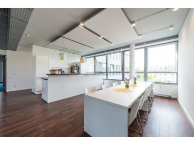 Repräsentatives Bürohaus mit Glas- / Natursteinfassade und moderner Architektur. Das Gebäude hat zwei attraktive Eingangsbereiche in Naturstein / Edelstahl mit Personenaufzügen, sowie einen ruhigen und schön begrünten Innenhof. Das helle, freundliche Penthouse bietet eine tolle Dachterrasse. Im Erdgeschoss befindet sich ein Fitness -Studio. Archivflächen (à € 7,00/m²) und Einzelstellplätze in der hauseigenen Tiefgarage (à € 50,00) können in den Untergeschossen angemietet werden.Die Ausstattung der Räume ist sehr hochwertig und beinhaltet u.a. mieterspezifische Raumaufteilung, Hohlraumboden, Bodentanks, CAT 5 - Verkabelung, elektrischer außen liegender Sonnenschutz, Teeküchen und Teppichboden. Besonderheit : Penthouse mit Dachterrasse