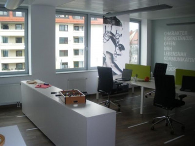 Das top-attraktive, im Jahr 2002 erbaute Büroensemble verfügt über insgesamt 28.000 m Büro- und Archivfläche. Gebäudestruktur und räumliche Abmessung sind so gewählt, dass alle klassischen, zeitgemäßen und zukunftsorientierten Büroformen den Wünschen der zukünftigen Mieter entsprechend verwirklicht werden können. Zwei gegeneinander geschwungene Spiegelglasfassaden und die über zwei Geschosse reichende, repräsentative Eingangshalle geben der Architektur ihren prägnanten Charakter. Der verkehrsgünstige Standort im Münchner Westend garantiert Zentrumsnähe und optimale Verkehrsanbindung bei ruhiger Lage.TG-Plätze à € 70,00, Freistellplätze à € 65,00, sowie Lagerflächen à € 7,50 anmietbar.Freie Flächen : EG: 335 m² -376 m² - 602 m² à € 11,502.OG : 433 m² - 606 m² - 671 m² à € 13,00