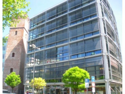 toller Neubau mit halbrunder, bodentiefer Alu- Glasfassade und toprepräsentativem Foyer. Die Büros haben Topstandard mit perfekter technischer Ausstattung und bieten einen traumhaften Ausblick auf die Altstadt.Durch die raumhohe Verglasung sind die Büros perfekt belichtet.Tiefgaragenstellplätze á € 220,00 zzgl. MwSt. stehen zur Anmietung zur Verfügung.