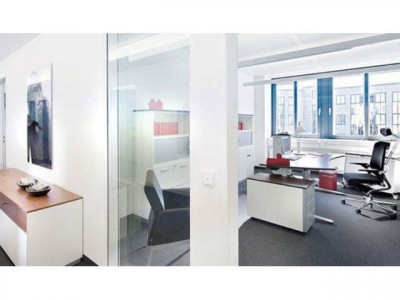 Repräsentativer fünfgeschossiger Bürokomplex mit 2 sehr anspruchsvollen Haupteingängen und tollen Eingangsbereichen mit aufwändiger Stahlkonstruktion, Treppenhäusern mit viel Granit und Edelstahl und jeweils drei grossen Personenaufzügen. Grosszügige Grüngürtel und attraktiv bepflanzte Innenhöfe mit einer Teichlandschaft laden zu kreativen Pausen ein.Funktionale, helle Büroflächen , Renovierung, Raumaufteilung und Boden nach Mieterwunsch, CAT 5 - Verkabelung, Hohlraumboden mit Bodentanks / Fensterkanälen, Be- und Entlüftung, außenliegender Sonnenschutz, hochwertige Bodenbeläge, Küche, getr. WC`s.GroßeTiefgarage mit vielen Stellplätzen (à € 65,00), sowie ca. 650 m² Lager-Archivfläche (teilbar ab 25 m², à € 6,50) anmietbar.