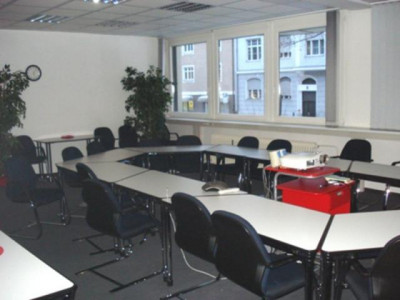 attraktiver und funktionaler Bürobau auf dem Gelände einer ehemaligen Fabrik, Eingang und Treppenhaus in Naturstein, Personenaufzug.Schönes Büro im Hochparterre, drei Zugangsmöglichkeiten, Rampenandienung, grosszügiger Entréebereich mit Industrieparkett, ideal für Kundenevents geeignet, sehr effiziente Raumaufteilung, bap-gerechte Beleuchtung, hochwertige Einbauten, CAT 5/Serverraum, grosse Küche.Lager-/Archivflächen und TG-Stellplätze anmietbar