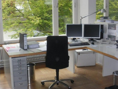 Traumhaft idyllische und charmante Liegenschaft in ruhiger Lage, umgeben von einem herrlichen Waldgrundstück - mitten in München !! Die Liegenschaft wurde, nachdem sie jahrzehntelang ein Forschungsinstitut beherbergt hat, liebevoll saniert und bietet nun einen vielfältigen Mietermix in einer absolut einzigartigen Atmosphäre.Freie Büroeinheit :Haus B ca. 414 m² im 1. OG ( z.T Raumhöhe über 4m, Industrieparkettboden, tolle Küche, CAT 5 - Verkabelung)Kfz-Stellplätze können á € 20,00 angemietet werden.