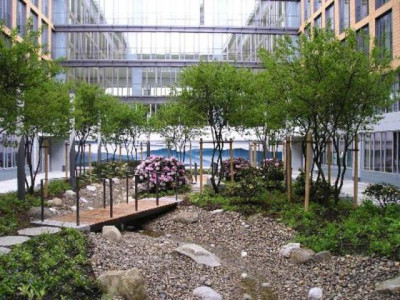 top- repräsentativer Neubau, bestehend vier Kopfbauten mit Verbindungsgebäuden und drei schön begrünten Innenhöfen mit Bächen, Brunnen und erholsamen Aufenthaltsmöglichkeiten.Zugang über mehrere repräsentative Eingangsbereiche mit je zwei Personenaufzügen.Lager-/Archivfläche à € 5,50, sowie Tiefgaragenstellplätze à € 100,00 anmietbar.