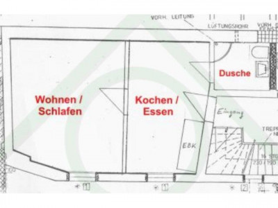 Die Wohnung verfügt über einem Bad mit Dusche und Fenster, einer Wohnküche mit Fenster sowie, einem Wohn-/ Schlafzimmer. Die Vermietung ist auch teilmöbliert möglich. Ein Waschmaschinenanschluß befindet sich im Bad, ein Wäschetrockenplatz im Garten hinter dem Haus kann mitgenutzt werden. Abstellräume im Keller. Nutzung des Grill- und Lagerfeuerplatzes nach Vereinbarung möglich. Ein DSL-fähiger Telefonanschluss ist vorhanden. DSL 6000 oder LTE 16.000 bzw. LTE 50.000 ist möglich. Sat-Anschluss in Wohnzimmer für die Satelliten Astra + Hotbird. Kostenlose PKW-Stellplätze sind vor dem Hause vorhanden. Wohnfläche: 30,11 m²Nettomiete: 200,- EUR zzgl. 10,- EUR SATNebenkosten: 65,- EURPKW-Stellplatz: inclusivenur Nichtraucher!