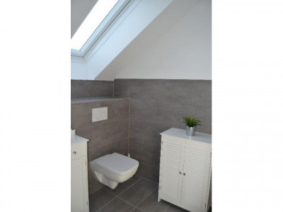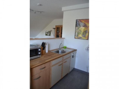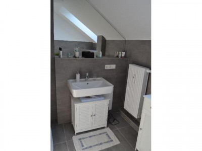 Die hier angebotene Wohnung befindet sich im Dachgeschoss eines Mehrparteienhauses und verfügt über ca. 54 m² Wohnfläche. Die gesamte Wohnung wurde im Februar 2015 renoviert. Nicht nur das hochwertige Parkett und das geschmackvoll modernisierte Bad werten die Wohnung erheblich auf, auch der Sonnenbalkon, welcher sich über die gesamte Hausbreite erstreckt, ist ein Highlight. Der Grundriss besteht aus einem Wohnzimmer mit offener Küche, einem Badezimmer mit Dusche und einem Schlafzimmer. Das Wohnzimmer hat eine schöne, einladende Größe und ist von der Küche durch eine halb hohe Wand leicht separiert. Ein Zugang zum Balkon ist hier gegeben. Das Badezimmer ist mit seinen modernen hellgrauen Fliesen ein Hingucker. Es ist mit einem Dachfenster und einer großen Dusche mit Sitzmöglichkeit ausgestattet. Vom Schlafzimmer aus können Sie ebenfalls den großzügigen Sonnenbalkon erreichen. Alle Wohnräume sind mit Parkettboden versehen, Küche und Flur sind mit den gleichen Fliesen wie das Badezimmer belegt. Zu der Wohnung gehören ein separater Kellerraum und PKW-Stellplatz, sowie eine gemeinschaftliche Waschküche. Hinter dem Haus befindet sich ein großes Wiesengrundstück, welches von den Mietern ebenfalls gemeinschaftlich genutzt werden kann. Die Miete setzt sich wie folgt zusammen: Kaltmiete 575,-EUR + PKW-Stellpl. 25,-EUR = 600,-EUR + NK 180,-EUR (inkl. Heizung) = 780,-EUR
