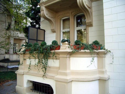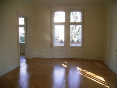 Diese herrschaftliche Altbau-Wohnung mit Balkon und Wintergarten auf ca. 130 m² Wfl. befindet sich im Hochparterre einer beeindruckenden denkmalgeschützten Stadtvilla mit nur 4 Einheiten, in zentraler Lage von Wiesbaden. Der Garten der mit genutzt werden kann, bietet zur Top-Innenstadtlage eine idyllische Ruhe. Von dem Eingangsdielenbereich haben Sie Zugang zu den stilvollen 3 Wohnräumen mit Rosette und Stuck, die durch große Schiebetüren verbunden sind. Die großen und hohen Fenster, verschaffen ein besonderen Flair und lassen genügend Licht einfallen. Die Altbauwohnung verfügt über ein lichtdurchflutetes Wohnzimmer mit Zugang zum gemütlichen Wintergarten, sowie ein geräumiges Arbeits-/ Esszimmer mit Zugang zum herrlichen Balkon. Ein komfortables Wohnzimmer, welches ebenso durch eine große Schiebetüre vom Arbeits-/ Esszimmer zu erreichen ist, begeistert auch hier durch eine Rosette und weiteren Stuckelementen. Von dem Dielenbereich aus zu begehen, ist ein separates WC. Das moderne Bad mit Wanne und großer Dusche ist von dem separaten WC zu erreichen.Des Weiteren befindet sich in der Wohnung eine Wohnküche mit Einbauküche.Die freundliche 2 Zimmer- Souterrain- Wohnung (ca. 65,00 m²) im Haus mit direktem Zugang zum Garten, die über ein Wohnzimmer mit Terrasse, eine Küche, ein Schlafzimmer, ein Bad und ein separates WC verfügt, kann als Gäste-Wohnung oder Büroeinheit zusätzlich angemietet werden. Getrennte Mietverträge sind auch möglich.3 Zimmer- Wohnung: Kaltmiete 1.235,00 € + Nebenkosten 150,00 € + Gas2 Zimmer- Wohnung: Kaltmiete 520,00 € + Nebenkosten 75,00 € + GasZu den Wohnungen gehört jeweils ein Kellerraum mit ca. 10-12 m².Ein einmaliges Angebot in einem herrschaftlichen Ambiente mit hervorragender Möglichkeit Wohnen und Arbeiten unter einem Dach zu verbinden.