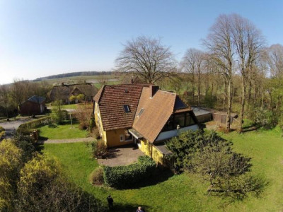 Stormlinden. Schon der Name sagt etwas über die historische Vergangenheit des Grundstücks.1917 gebaut wurde es erst als Wohnhaus genutzt und wurde später die Schule von Hattstedt. Vorher aber hat 1866 Theodor Storm hier unter den Linden seine zweite Frau geheiratet. Auch der ehemalige Ochsenweg verläuft heute nicht mehr sichtbar am Westrand des Grundstücks vorbei. Hier vermischen sich Geschichte, Gemütlichkeit und Tradition. Das Anwesen ist eines der schönsten in der Region und lässt viel Raum für eigene Vorstellungen. Schon der Eingang zu dem Grundstück ist ein Blickfang und die gepflasterten Wege integrieren sich wunderschön in das parkähnliche Anwesen. Die Auffahrt hinterm Haus führt zu einer Doppelgarage und zur hinteren Klönschnacktür. Auf dem Hinteren Teil des Grundstücks, fast unter den Linden, die kuppelförmig an eine Art Kathedrale erinnern, steht die finnische Blockbohlen Sauna mit einem großem Wasserbottich, wo man sich im Winter entspannen und Ruheraum erholen kann. Im Mai blühen die großen Rhododendrenhecken und im Teich tümmeln sich später die Frösche und Fische, denen man auf der Bank am Teich zusehen kann. Hier gibt es viele Rückzugsmöglichkeiten um die Seele baumeln zu lassen. 1980 wurde ein Anbau abgerissen und durch einen Neuen ersetzt. An der Terrasse vom Frühstückszimmer befindet sich ein Brunnen der u.a. den Teich mit Wasser versorgt. Das Haus ist nicht mehr bewohnt. Somit stünde einem kurzfristigem Umzug nichts mehr im Wege. Ein Video zu dem Objekt haben wir auf der Startseite unserer Homepage www.iul-immo.de