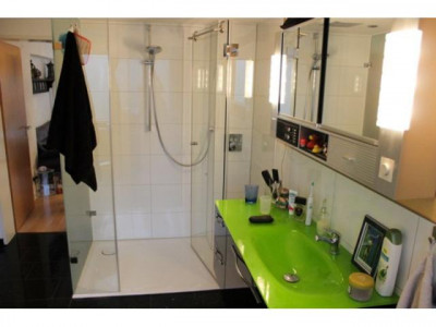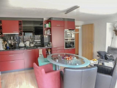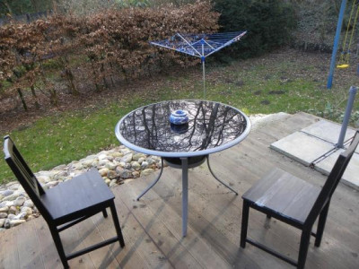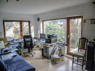 Das Gebäude ist im Jahre 1955 bzw. 1977 in konventioneller Bauweise auf einem 1.388 m² großen und nach WEG geteilten Grundstück errichtet worden. Zur Eigentümergemeinschaft gehören das an der Straße liegende Einfamilienhaus sowie das zurückliegende Zweiparteienhaus. Die zum Verkauf stehende Wohneinheit befindet sich im Erdgeschoss und bietet eine Wohn- und Nutzfläche von ca. 94 m², welche sich auf den Bereich Wohnen mit offener Küche, zwei weitere Räume, Diele, Bad und Gäste-WC verteilen. Weiterhin gibt es im hinteren Bereich der Wohnung zwei Abstellräume. Von zwei Räumen erreicht man die mit Holzbohlen (Sibirische Lärche) ausgelegte Terrasse, welche direkt nach Süden ausgerichtet ist. Die Gartenfläche im Sondernutzungsrecht beträgt ca. 320 m² und ist liebevoll und pflegeleicht angelegt. Auf dem Grundstück befinden sich zwei Gartenhäuser. Zum Objekt gehört ein Kfz-Außenstellplatz; die zur oberen Wohneinheit gehörende Einzelgarage kann ggf. angemietet werden. Die kleine WEG verwaltet sich selbst.