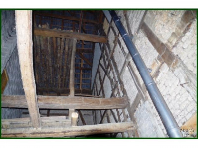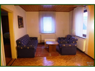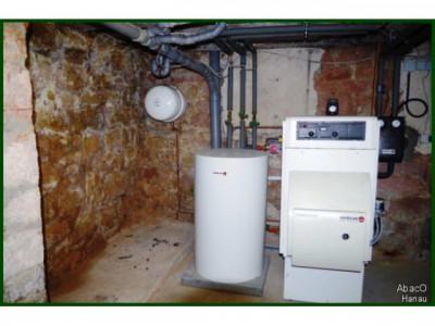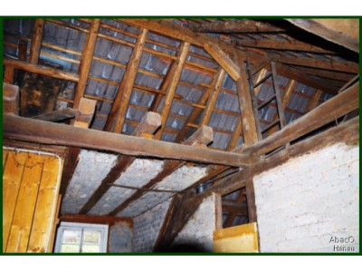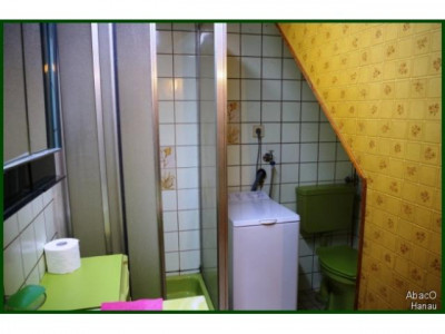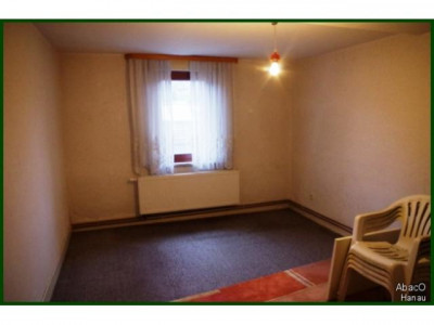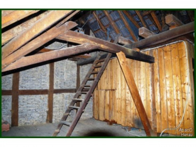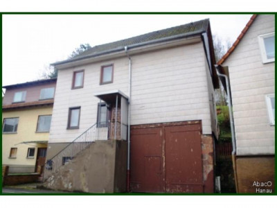 Machen Sie was draus! Dieses Wohnhaus ist insbesondere für junge Leute geeignet, die zunächst erst einmal einziehen möchten (das geht im derzeitigen Bau- und Pflegezustand) und aus den leeren Räumlichkeiten im Dach und nebenan in dem hohen scheunenartigen Gebäude etwas machen möchten. Über eine steinerne Außentreppe kommt man ins Erdgeschoß des Hauses, das aufgrund des Geländeprofils in den Hang gebaut wurde. Dort befindet sich der Flur, der Wohn-Ess-Küchenbereich und das kleine Duschbad. Im Obergeschoß befinden sich 3 Zimmer und der Ausgang zur Terrasse und zum großen Garten. Das Dachgeschoß ist ausbaufähig für 2 vollwertige Zimmer. Der scheunenartige Anbau mit hohem Scheunentor ist gleich hoch wie das Wohnhaus und lässt sich nutzen als Garage (2 mittlere Autos passen hintereinander hinein); es ist ein sozusagen Hohlraum mit einem kleinen Zwischenboden. Durch das Einziehen von Holzböden lässt sich zusätzlicher Gewerbe- oder Wohnraum schaffen. Der Keller liegt auf Straßenniveau und enthält einen Vorrats-/Abstellraum, Heizraum und die Öltanks.