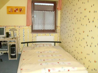Telefonische Anfragen werden SOFORT bearbeitet. Mailanfragen-Bearbeitung dauert länger.schöne neuwertige Doppelhaushälfte; 1 1/2 - stöckiger Massivbauweise, Garten, Terrasse, Baujahr 1998 mit 4 Zimmern: Wohn - Esszimmer mit Kamin, 3 Schlafzimmer, Küche mit Einbauküche, Bad und Gäste - WC;Wohnfläche ca. 120 m²Grundstück ca. 605 m²RAUMAUFTEILUNG: Erdgeschoss: Wohn - Esszimmer mit Kamin, Küche, Gäste - WC, Abstell - und HWR-Raum, Terrasse Obergeschoss: 3 Schlafzimmer, Wannenbad, Balkon DG ( Spitzboden: 1 zusätzliches Gästezimmer AUSSTATTUNGFenster: Thermo - Isolierfenster ( Kunststoff ) Heizung: Erdgasheizung WW - Aufb.: über Heizung Massivholztreppedie Fussböden sind gefliest bzw. mit Laminat belegt Einbauküche ggn. Aufpreis, Kamin, Terrasse, Carport, 2 Stellplätze, sofort frei nach Absparche