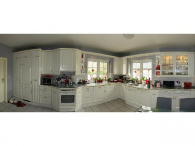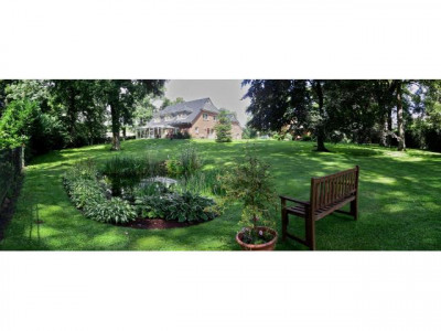 Das exklusive Anwesen wurde 1999 auf einer denkmalgeschützten Wurt (Warft) erbaut. Es gibt Warften aus dem 3. Jahrhundert v. Chr.! Das Parkgrundstück verfügt über eine Fläche von etwa 5.000 m² Die Gebäude wurden in Massivbauweise erstellt: 42 cm Außenmauerwerk, mit rotbrauner Außenschale als Verblendmauerwerk, 5 cm KD-Platte, Hochlochziegel, Poroton. Die Geschossdecken sind aus Stahlbeton. Der vorhandene Energieausweis bestätigt einen Energieverbrauchswert von 88,6 kWh (m²a). Über eine eigene lange Zufahrt, rechts und links Weiden, erreicht man das Anwesen. Nach Öffnung des stattlichen, elektrisch betriebenen Tores, fährt man vor die Gebäude. Das erste Haus auf der rechten Seite verfügt über zwei geräumige, abgeschlossene Wohnungen mit insgesamt etwa 160 m². Beide Einheiten verfügen über Einbauküchen, Bäder, Terrasse im EG mit etwa 15 m² und Balkon im OG mit etwa 10 m². Das Gebäude ist durch eine Doppelgarage (44,6 m²) mit dem Hauptgebäude verbunden.Qualität der Ausstattung: LuxusDenkmalschutzobjekt: Nein