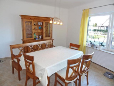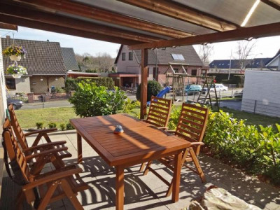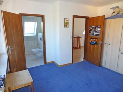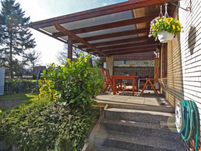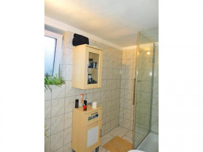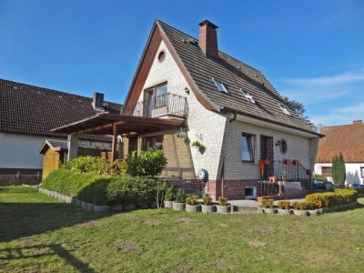 Renoviertes und komplett saniertes und erneuertes Einfamilienhaus Baujahr 1963 mit separater Einliegerwohnung und schönem Garten. Ideal geeignet für die Familie mit größeren Kindern oder als Generationshaus mit Elternteil. Die ELW eignet sich auch gut zur Vermietung und zur Amortisation. Das gesamte Haus wurde in den letzten Jahren komplett um- und ausgebaut Es wurden neue Bäder, neue Fenster, neue Küchen, neue Bodenbeläge, sowie teilweise neue Wände gezogen, neue Gasbrennwertheizung und neue Heizkörper installiert. Das ganze EG ist gefliest, links neben dem Hauseingang befindet sich die komplett eingerichtete Küche, nebenan befindet sich das ca. 21 m2 große Wohnzimmer mit über 16 m2 großer neu überdachter und gepflasterter Terrasse zum Garten. Ein weiteres ca. 16 m2 großes Zimmer schließt sich von der Diele neben dem Voll-Duschbad an. Unter der Treppe zum Obergeschoß befindet sich der Zugang in den Keller bzw. in die Souterraineinliegerwohnung, die auch von außen einen separaten eigenen Zugang hat. Eine aufgearbeitete Holztreppe führt in das Obergeschoß, das mit Kinderzimmer mit eigenem WC und Handwaschbecken, ein Schlafzimmer mit Balkon und Abstellraum mit Veluxfenster ausgestattet ist. Eine Einzugstreppe führt auf den wärmegedämmten Spitzboden.Im Souterrain wurde eine 2 Zimmer-Einliegerwohnung von ca. 47 m2 mit eigenem Zugang erstellt. Sie ist mit einem Wohnzimmer von ca. 18,5 m2, mit einem Schlafraum, einer kleinen Küche und einem Duschbad ausgestattet. Im Keller befindet sich noch ein Abstell- sowie der Heizraum mit der Waschküche und Waschmaschinenanschluß. Das Haus erhielt eine neue Elektrik, neue Kupferregenrinnen, einen neuen Gartenzaun und eine neue Müllbox. Ein Gartenholzhaus für Gartengeräte und Gartenmöbel ist außerdem vorhanden.Eine Garage 4 x 9 m mit Reparaturgrube sowie eine große für 4 Autos gepflasterte Stellplatzfläche direkt am Haus rundet dieses attraktive Angebot ab..