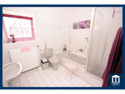 Reihenhaus in Eschborn-Niederhöchstadt!EG- Helles und großes Wohnzimmer mit Parkettboden- Zugang vom Wohnzimmer auf Terrasse und Garten- Küche mit neuwertiger Einbauküche- Gäste WC mit Fenster- Kleiner Flur1.OG- Flur, Schlaf-, und Kinderzimmer mit Laminatboden ausgelegt- Balkon am Elternschlafzimmer- Tageslichtbad mit Badewanne und Dusche DG- Großes Studio mit LaminatbodenKeller- 3 Kellerräume