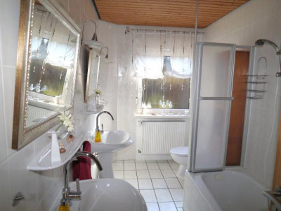 Dieses ansprechende und familiengerechte Wohnhaus mit traumhafter Gartenanlage wurde 1970 gebaut und laufend modernisiert und renoviert. Die Fenster wurden nach 1990 laufen erneuert, die Isolierung verbessert, 2007 die Luftschicht mit Pergolite verfüllt, 2008 der Balkon komplett saniert, 2012 der Heizkessel erneuert. Es ist zu 2/3 unterkellert und verfügt über eine Wohnfläche von ca. 134 m². Diese erstreckt sich über das Erd- und Obergeschoss. Im Anbau befinden sich eine Garage mit elektrischem Torantrieb, Abstellraum, Hobbyraum und ein Doppelcarport. Im Garten kann ein einfacher Gartenpavillon genutzt werden. Hier stehen 3 Terrassen (1x mit Glasdach und Grillkamin, Sonnenterrase mit Wasserlauf und kleiner geschützter Sitzecke) zur Wahl. Der Garten ist überwiegend pflegeleicht als Rasenfläche angelegt. Das Satteldach ist mit Pfannen eingedeckt. Die Kunststofffenster sind Isolierverglast und verfügen überwiegend über Außenjalousien. Beheizt wird das Haus über eine Öl-Zentralheizung (2012).Weitere interessante Angebote finden Sie auf meiner Homepage unter www.sielemann-immobilien.comWohnfläche: ca. 134,17 m²Erdgeschoss: ca. 81,31 m²Wohnzimmer, Arbeitszimmer, Wohnküche (EBK), Bad, FlurObergeschoss: ca. 52.86 m²3 Schlafzimmer, Ankleidezimmer, FlurNutzfläche: ca. 223,55 m²Keller, Boden Haus, Bodenraum Garage, Geräteraum, Doppelcarport, überdachter FreisitzWohn/Nutzfläche gesamt: 357,72 m²
