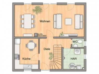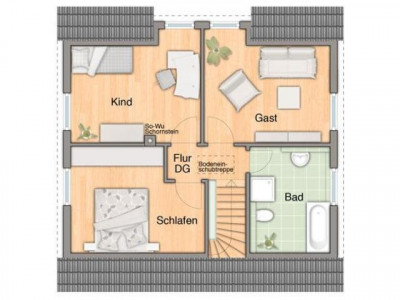So viel Individualität wird Sie begeistern. Das Flair 113 können Sie je nach Bedarf in einer Vier- oder Fünfzimmer-Variante bauen lassen. Entweder Sie entscheiden sich im Erdgeschoss für ein großes Wohnzimmer, das allen Wünschen nach Komfort gerecht wird, oder Sie teilen den großen Raum in zwei Zimmer und erhalten so noch zusätzlich ein Kinder-, Gäste- oder Arbeitszimmer. Die angrenzende Küche ist gut geplant und bietet genügend Platz für die beliebte Essecke.Das Dachgeschoss ist in drei geräumige Zimmer und ein Bad eingeteilt. Hier findet jeder seinen Freiraum. Beide Etagen überzeugen mit großzügig geschnittenen, hellen Räumen, die zu Ihrem Wohlgefühl beitragen werden.Auf Wunsch kann das Haus mit einer Putzfassade erstellt werden!
