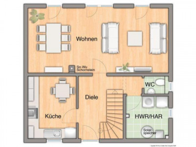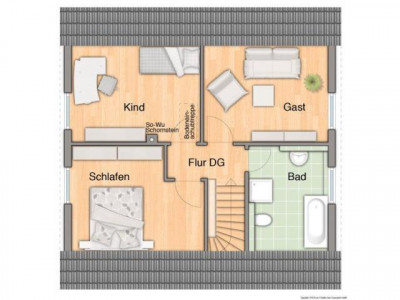 110 Quadratmeter Grundfläche: Dies ist Flair 110, das Massivhaus von Town & Country Haus. Der erste Blickfang sind die bodentiefen Fenster. Der große, helle Wohnbereich gleich im Erdgeschoss und Küche gleich neben dem Wohnzimmer beweisen Funktionalität und Stil. Überdies finden die Bewohner dort ausreichend Platz in einer gemütlichen Essecke, so dass die Küche immer wieder zum Treffpunkt wird. Auch überzeugt das Dachgeschoss durch sein Platzangebot. Mit seinem Schlaf-, dem Kinder- sowie einem Gästezimmer. Fast wie im Bilderbuch passt dazu das großzügig geschnittene Badezimmer, das von überall her im Dachgeschoss auf kurzem Weg zu erreichen ist. Mit garantierter Bauzeit wird dem Eigentümer das Flair 110 schlüsselfertig übergeben. Auch dies ist ein großer Pluspunkt, weil dadurch die Zeit der finanziellen Doppelbelastung– hier Miete, da Hausfinanzierung – auf ein Minimum begrenzt wird.Auf Wunsch ist dieses Haus auch mit Keller sowie als EnergieSparhaus erhältlich.