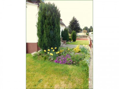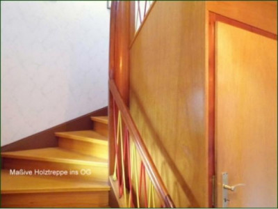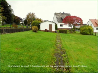 Es handelt sich um ein großzügiges 1 - 2 Familienhaus mit 2 in sich abgeschlossen Wohnungen mit je ca. 60 m².Der überdachte und abgeschlossene Eingangsflur mündet in das sehr schöne Treppenhaus. Im EG. befindet sich der Zugang zur 1. Wohnung sowie der Abgang in den großen geräumigen Keller mit Ausgang auf das Grundstück. Die EG. Wohnung vefügt über 1 Flur, 1 Schlafzimmer, 1 Wohnzimmer, 1 Esszimmer, 1 Küche, 1 Bad mit Badewanne und Toilette. Über die massive hochwertige Holztreppe gelangen Sie zur abgeschlossen 2. Wohnung. Diese verfügt über 1 Schlafzimmer, 1 Wohnzimmer, 1 Esszimmer, 1 Küche, 1 Duschbad mit Toilette und den Flur. Über eine Treppe, die man im Esszimmer noch gut einbauen könnte, wäre ein weiterer ca. 30 m² großer Raum im Dachgeschoß auszubauen und z.B. als großes Wohnzimmer zu nutzen. Es gibt auf dem schönen und pflegeleichten Grundstück eine massive Garage in die man über eine gepflasterte großzügige Grundstückseinfahrt gelangt.Das 1209 m² große Grundstück hat den Vorteil, daß man ca. 500 - 600 m² zu einer weiteren Bebauung eines Wohnhauses abtrennen könnte und einen Verkaufserlös von ca. 25.000.- € bis 30.000.- € erzielen könnte !