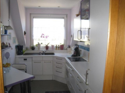 Individuelle Dachgeschoßwohnung mit 53 qm Dachterrasse. Ein Highlight und eine Oase zum Wohlfühlen. Das Haus befindet sich in sehr gepflegtem Zustand. Ihr neues Zuhause verfügt über 2 Zimmer mit separater Küche und Vollbad auf 64 qm. Eine Lichtkuppel sorgt schon für helles Tageslicht im Dielenbereich. Die helle, freundliche Wohnung ist optimal aufgeteilt und überzeugt durch ansprechende Ausstattung. Vom Wohnzimmer abgehend der schöne Balkon mit dem Blick ins Grüne. Optional kann ein PKW Stellplatz für mtl.34,- EUR übernommen werden.