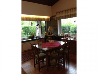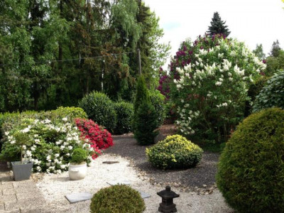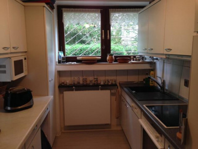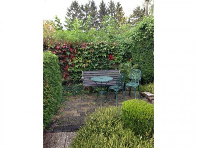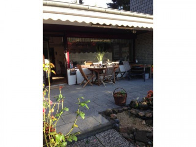 Bei dem vorliegenden Objekt handelt es sich um einen Bungalow mit Satteldach als Doppelhaushälfte. Das Objekt ist lichtdurchflutet durch hohe und weit ausgelegte Fensterelemente. Die Wohnfläche unterteilt sich in einen großzügigen Eingangsbereich, neben dem sich das aufwendig modernisierte Gäste-WC befindet. Ein großes Schlafzimmer mit Türdurchgang zum geräumigen Bad (Waschtisch, WC, Dusche, Badewanne) liegt gegenüber. Die Küche verfügt eine Durchreiche zum Esszimmer. Zum Garten hin finden wir ein großes Wohnzimmer mit angrenzender teilweiser überdachter und windgeschützter Terrasse.Der Bungalow ist voll unterkellert. Die Räume sind mit Tageslichtfenstern aus Holz versehen und voll beheizbar. Hier befinden sich ein Gästezimmer, WC, Dusche mit Waschgelegenheit, sowie eine Werkstatt, ein HWR und ein großer Hobby-Bereich. Vor dem Haus befinden sich zwei PKW-Stellplätze und am Ende des Gartens eine übergroße Garage. Der Garten selbst ist hochwertig angelegt mit verschiedenen Bereichen der sommerlichen Nutzung.