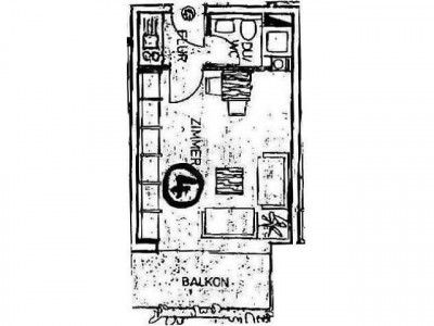 Die ruhig gelegene Wohnung hat einen kl. Flur mit einer Singleküche, eine Dusche, sowie ein geräumiges Zimmer mit Balkon. Die Böden sind mit Fliesen ( Fußbodenheizung!) ausgelegt.