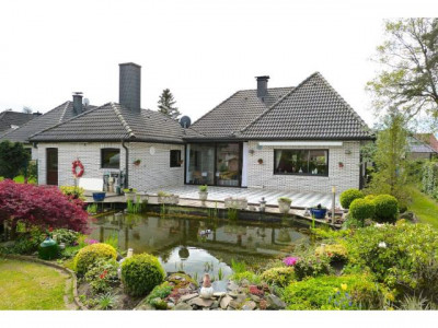 ***************************************************************************************** Alle Informationen zu diesem Objekt finden Sie unter www.tiehen.com/8320. Sowie mehr als 250 weitere Objekte auf www.tiehen.com! ***************************************************************************************** DACH:- Winkelwalmdach AUSSENWÄNDE:- weißer Verblender HEIZUNG:- Erdgaszentralheizung- Warmwasserspeicher 1988 FENSTER:- Kunststoff, Iso-Verglasung AUSSTATTUNG:- Einbauküche - gemauerter Kamin - Wintergarten vom Wohnbereich aus begehbar- Bad EG: Wanne, WC, Bidet, Waschbecken- Bad DG: Dusche, Waschbecken, WC- Gäste-WC: Waschbecken, WC, deckenhohe Verfliesung- Bodenbeläge Wohnbereich: Fliesen- Bodenbeläge Schlafbereich: Parkett- Innentüren Holz - freitragende Buchenholztreppe AREAL:- Garten- Walmdachgarage, mit E-Sektionaltor- Terrasse, mit Markise, gefliest- Holzgartenhaus SONSTIGES:- Das Objekt befindet sich in einem gepflegten Zustand! RAUMAUFTEILUNG:Erdgeschoss:- Wohnzimmer: 59,96 - Schlafzimmer: 10,25- Küche: 12,32- Gäste-WC: 1,77- Bad: 6,60- Wintergarten: 15,20- Diele: 12,00- HWR: 8,00- Abstellraum: 1,64Obergeschoss:- Schlafzimmer: 21,53- Schlafzimmer: 22,05- Schlafzimmer: 9,18- Bad: 5,63- Flur: 10,00