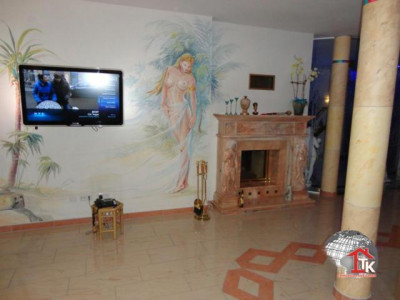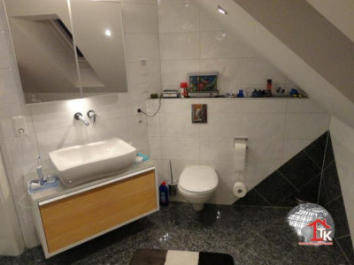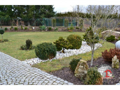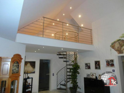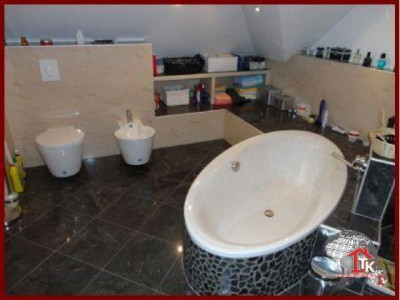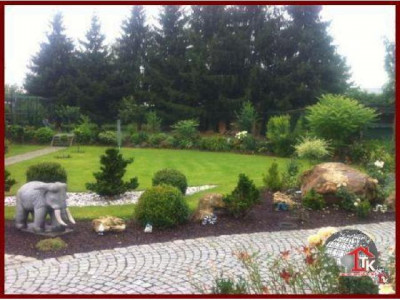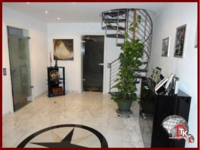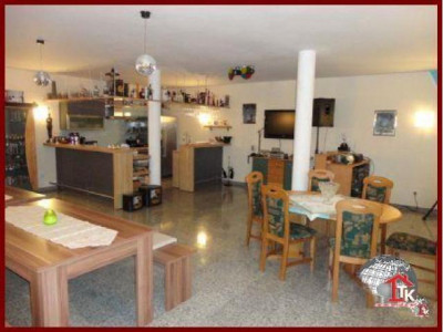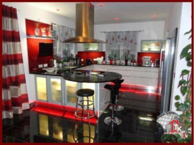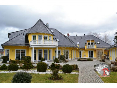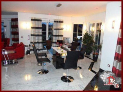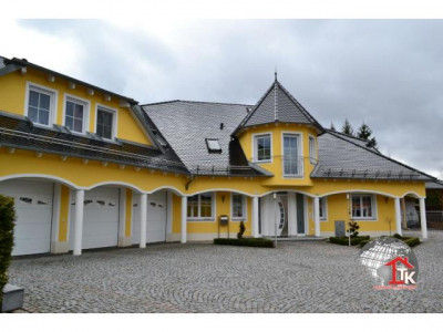 Sie suchen nach einem neuen, geschmackvollen Haus ? Aber auch nach etwas Aussergewöhnlichem das nicht alltäglich ist ?Diese Unternehmervilla liegt in ruhiger Wohnlage inmitten eines traumhaften, gepflegten Gartengeländes von Kümmersbruck. Schon allein die Zufahrt zur Villa lässt den excellenten Geschmack des Eigentümers erahnen. Das Haus selbst ist mit seiner ansprechenden, aussergewöhnlichen Architektur - eine Augenweide.Der imposante überdachte Eingangsbereich zieht sich bis über die angrenzenden drei Garagen hin und wird von edlen Säulen getragen. Über dem Garagengebäude befindet sich eine hochwertig ausgestattete Einliegerwohnung von ca. 116 qm Wohnfläche die über einen sep. Treppenaufgang verfügt. Hier steht Ihnen ein schicker, großzügiger offener Wohn- und Essbereich mit traumhafter Einbauküche sowie Zugang zum sonnigen Balkon zur Verfügung. Von hier haben Sie einen traumhaften Ausblick bis hin zu den Vilsauen und zum Gelände der Landesgartenschau. Eine große Wohndiele, zwei Schlafzimmer sowie ein großes, edel ausgestattetes Badezimmer runden den Bereich der Einliegerwohnung ab.Der Privatbereich der Villa erstreckt sich über eine Wohnfläche von ca. 230 qm im EG und ca.130 qm im OG. Nach dem durch eine Glastür abgetrennten Windfang betreten Sie den imposanten Wohn- und Essbereich der mit einer hochwertigen Einbauküche mit Granitarbeitsplatte und mit LED-Lichtakzenten ausgestattet ist. Der Fernsehbereich mit seinem edlen Marmorkamin ist ein zusätzliches Highlight. Durch eine hochwertige Doppelglastür gelangen Sie in den großzügigen Wellnessbereich mit Jacuzzi. Schicke Säulen und eine geschmackvolle Schneckendusche lassen diesen Raum zum absoluten Wellnesstraum werden.Über eine geschmackvolle, offen gewendelte schwarze Marmortreppe mit eingefräster LED-Beleuchtung und hochwertigem Edelstahlgeländer mit Glasakzenten gelangen Sie zur Galerie in den oberen Privatbereich der Villa.Hier befindet sich das Elternschlafzimmer mit Zugang zum Balkon und angrenzendem Marmorbad mit Whirlpool, Dusche, Bidet und WC sowie einer Umkleide. Ein großes Jugendzimmer mit Zugang zum zweiten Balkon und ein zweites, etwas kleinere Arbeits- oder Kinderzimmer mit eigenem Duschbad stehen Ihnen im OG ebenfalls zur Verfügung. Über eine zweite Wendeltreppe gelangen Sie in ein kleines, offenes StudioIm gesamten Haus wurden nur hochwertige Materialien verarbeitet. Der gesamte Wohnbereich ist ausgestattet mit Fussbodenheizung, edlem Marmor, der Treppenaufgang mit Stufen - Granit Star Galaxy, elektr. Rolläden, LED-Lichtakzenten, in allen Räumen befinden sich Anschlüsse für Lautsprecher, DSL, Fernseh- und Telefon.Vom EG aus betreten Sie auch den großzügigen, komplett ausgestatteten Partyraum, den Hauswirtschaftsbereich, den Raum mit der Heizungsanlage und die drei Garagen mit elektr. zu öffnenden Toren.Im Gartenbereich steht Ihnen ein zusätzlicher Anbau zur Verfügung. Hier befindet sich ein kleiner Partyraum - der ideale Bereich für Ihre Kinder -, sowie ein zusätzlicher Abstellraum.Der gesamte Aussenbereich ist edel und geschmackvoll angelegt und mit elektrischem Hoftor ausgestattet. Das Anwesen ist mit einer Alarmanlage gesichert.