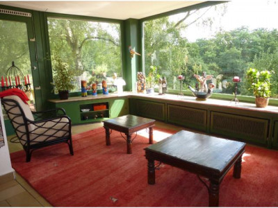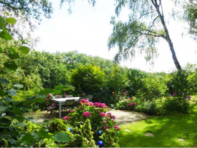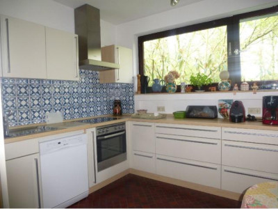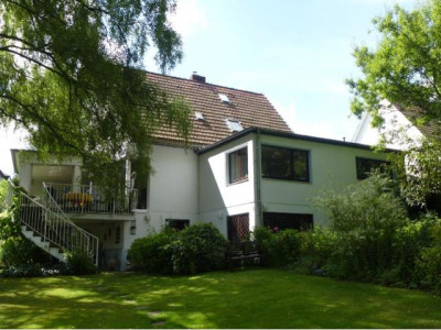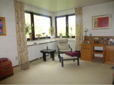 Das freistehende Einfamilienhaus befindet sich in ruhiger Lage und bietet einen atemberaubenden Blick auf das angrenzende Landschaftsschutzgebiet und in den eigenen Garten.Durch die kleine Eingangsdiele - mit Garderobenbereich und Gäste-WC - gelangen Sie in den großzügigen Wohn-Essbereich, der sich über den Wintergarten mit großen Fensterfronten zur Terrasse und zum parkartig angelegten Garten hin öffnet. Neben Küche und Speisekammer, gibt es im Erdgeschoss noch zwei Schlafzimmer, davon eines mit Zugang zur Terrasse. Von dieser führt eine geschwungene Treppe hinab in den wunderschönen Garten. Hier laden eine überdachte Terrasse und ein gepflasterter Außensitzplatz zum Entspannen und Genießen ein.Eine Wendeltreppe führt ins Dachgeschoss. Es stehen Ihnen drei weitere Schlafzimmer (davon eines mit Zugang zum westlich ausgerichteten Balkon), eine Abstellkammer, ein Wannenbad und ein separates WC zur Verfügung.Selbstverständlich ist das Haus voll unterkellert. Neben zwei wohnlich ausgebauten Räumen und einem weiteren, geräumigen Bad mit Wanne und Dusche, gibt es hier Heizungs- und Waschkeller sowie zwei Vorratsräume.Eine im Basement integrierte Garage und eine weitere, 1968 aufgestellte Fertigteilgarage sowie der davor gelegene Stellplatz, bieten Abstellmöglichkeiten für Ihre Fahrzeuge.