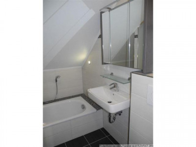 Die 2015 ausgebaute Wohnung befindet sich in einem sehr gepflegten und modernen 4-Parteienhaus (Baujahr 2008). In der 2. Etage im Dachgeschoss stehen Ihnen 2 Zimmer, Küche, Vollbad und Süd-Balkon mit einer Wohnfläche von ca. 52 qm zur Verfügung. *********************************************--- Dachgeschoss ------ Wohnzimmer--- Küche--- Schlafzimmer--- Badezimmer (Badewanne u. Dusche)--- Balkon--- StellplatzDie Wohnung ist mit einem schönen hellgrauen Laminatboden ausgestattet. Direkt hinter der Wohnungstür befindet sich die Küche. Hier befindet sich auch der Anschluss für Ihre Waschmaschine. Eine Garderobe mit Schuhschrank kann im Außenflur vor die Wohnungstür gestellt werden. Angrenzend an der Küche befindet sich das Schlaf-, Wohn- und das Badezimmer. Das geräumige Wohnzimmer grenzt am schönen Südbalkon. Das innenliegende Badezimmer ist sehr modern gestaltet und mit einem Waschbecken, einem WC, einer Badewanne und einer bodengleichen Dusche mit Echtglastür ausgestattet.TV-Empfang über die vorhandene Satellitenschüssel. Beheizt wird mit einer Gaszentralheizung.1 kostenloser Stellplatz steht Ihnen auf dem Grundstück zur Verfügung.Energie:- Energiewert/Endenergieverbrauch: 57,3 kWh/(m²*a)- Art des Energieausweises: Energieverbrauchsausweis- Wesentlicher Energieträger: Gas- Baujahr des Objekts (gemäß dem Energieausweis): 2008