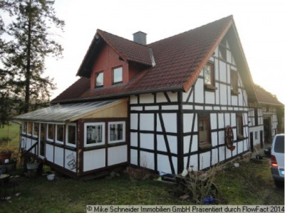 Dieses unter Ensembleschutz stehende Fachwerkhaus gliedert sich im Erdgeschoss in ein Wohnzimmer mit Ofen, das Speisezimmer, die Küche und das Badezimmer mit Badewanne, welches in hellen Farben gehalten wurde, auf. Das Obergeschoss verfügt über das Schlafzimmer und das Kinderzimmer. Im Kellergeschoss ist ein Büro mit separetem Eingang, ein Abstellraum und ein zusätzlich kleines helles Badezimmer vorhanden. Angrenzend an das Haus befindet sich außerdem eine Scheune, in der der Heizungsraum eingebaut wurde und in der Platz für ca. drei PKW's gegeben ist. Auf dem großzügig angelegten Hof kann man zudem Fahrzeuge abstellen oder den Kindern das Radfahren lehren.