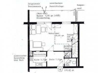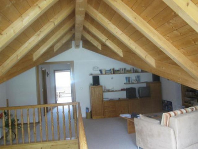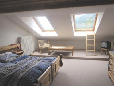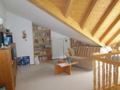 Herrlicher, unverbaubarer Bergblick zum Geigelstein und Breitenstein. Die attraktive Wohnung (Nr. 18) überzeugt sowohl durch ihre ruhige Lage als auch durch einen schönen Schnitt sowie helle Räume. Die Wohnung erstreckt sich auf 2 Ebenen (2.OG+DG). Im OG stehen Ihnen ein großer Wohn/Essbereich mit Zugang zum Süd/West-Balkon, eine Küche mit Einbauküche und Durchreiche zum Essbereich, 1 WC sowie ein kleiner Abstellraum zur Verfügung. Über eine Holztreppe vom Wohnbereich erreicht man das DG. Hier befindet sich die Galerie mit beeindruckender Raumhöhe und Sichtdachstuhl, welche eine sehr angenehme Wohnatmosphäre erzeugt und einen zusätzlichen Aufenthaltsbereich bietet. Von hier aus sind das Schlafzimmer, Kinderzimmer und das Bad/WC zu erreichen. Ein Kellerabteil gehört zu der Wohnung. Die Wohnung ist mit Teppichböden ausgestattet, Kabelanschluss sowie ein Waschmaschinenanschluss ist vorhanden. Als Gemeinschaftseinrichtungen stehen ein Waschraum und ein Fahrradkeller zur Verfügung. Das mtl. Wohngeld an die Hausverwaltung beträgt EUR 303,-- inkl. Heizung/Warmwasser. Der TG-Stellplatz Nr. 28 kostet zusätzlich EUR 10.000,--.Der Energieausweis ist in Erstellung und folgt in Kürze.