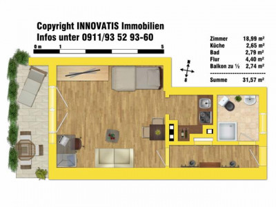 Die sehr helle Wohnung liegt im 5.OG eines gepflegten und schön umgrünten Mehrfamilienhauses direkt neben der Georg-Simon-Ohm Hochschule zwischen Wöhrder See und Wöhrder Wiese.Bequem gelangen Sie mit dem vorhandenen Aufzug über den Laubengang in die Wohnung.Dort werden Sie von einer geräumigen Diele empfangen, von wo aus sich das Duschbad und der 19m² große Wohnraum erschließt. Vom Wohnraum aus ist dann die praktische Küchennische mit vorhandener Kücheneinrichtung begehbar.Bereits in der Diele strahlt Ihnen das Licht vom großen Balkonfensterelement im Wohnzimmer entgegen. Der Westbalkon ist über 5m² groß und bietet den Blick auf den haushoch gewachsenen Baumbestand im begrünten Garten. Genießen Sie von hieraus die Aussicht auf die Nürnberger Skyline.