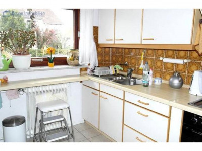 Grundstück: hellip; (Angaben folgen) Objektart: Reihenmittelhaus Baujahr: ca. 1960, Erweiterung des Wohnzimmers erfolgte 1965 Wohn-/Nutzfläche: ca. 98 m² Zimmer: 4 Zimmer, Küche, Bad Einbauküche: vorhanden (mit Gasherd) Bad: Wannenbad (aus dem Baujahr) im Obergeschoss vorhanden Balkon: vorhanden, in Westausrichtung; vom Schlafzimmer aus zu begehen Terrasse: vorhanden, in Westausrichtung Fenster: Holzfenster aus dem Baujahr - nachträglich mit Isolierverglasung ausgestattet Türen: Holztüren in Holzzargen Fußböden: überwiegend textile Beläge Treppe: Holztreppen Heizung: Gasheizung Keller: Vollkeller vorhanden, der Anbau im Wohnzimmer ist nicht unterkellert Fassade: Putzfassade, gestrichen Dach: Satteldach mit Pfanneneindeckung Dachboden: vorhanden, zu Wohnzwecken ausgebaut Geschossdecken: Beton Garage: vorhanden, auf dem Garagenhof in der benachbarten Straße Energieausweis: ist beantragt Übergabe: nach Vereinbarung