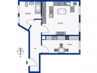 Die 1-Zimmer-Wohnung mit separater Küche und Tageslichtbad mit Wanne befindet sich in Hochparterre in einem MehrfamHaus in der Emmerichstraße.