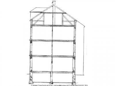 Es handelt sich um ein unterkellertes, dreigeschossiges Wohnhaus mit ausgebautem Dachgeschoss. In den Geschossen befinden sich insgesamt 6 Wohneinheiten mit unterschiedlichen Grundrissen sowie unterschiedlicher Anzahl an Wohnräumen. Hierbei handelt es sich um eine 1-R/WE, drei 2-R/WE, eine 3-R/WE und eine 4-R/WE. Alle Einheiten sind teilsaniert bzw. im Rohbaustadium. Insgesamt sind noch umfassende Baumaßnahmen hinsichtlich Trockenlegung im Keller, Heizung und Sanitär, Fertigstellung der Wohnungen, Haus- und Hoftür, Treppenhaus, Verputzarbeiten und Herstellung der Außenanlagen notwendig. Der unbebaute Grundstücksteil an der Gebäuderückseite ist in einem ungepflegten Zustand. Eine hier befindliche Garage vermittelt einen noch intakten Eindruck.