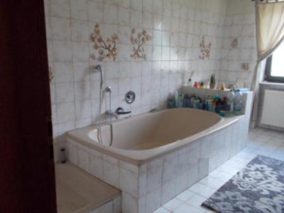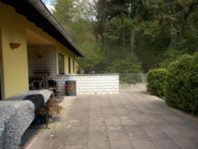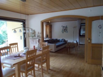 Ortsrandlage, Bebauung in 2. Reihe, eigene Zufahrt.Großzügiges WOHNHAUS mit ELW, geräumigen Innenhof, 2 Hallen, großem, schön angelegten SÜD-Garten. Bruchstein-Einfriedung.Sehr schöne, große SÜD-Terrasse mit Fernblick in den angelegten Garten und Naturlandschaft.Hier finden Sie als Naturliebhaber Raum für Träume - "Erholung pur" !Erdgeschoss: Hauseingang, Flur, Wasch-/Trockenraum, Gäste-Zimmer, Partyraum + ELW: Flur, Bad, Vorraum, Solarium, MusikzimmerObergeschoss: Offene Innen-Treppen-Anlage, Flur, Wohn- und Esszimmer mit Zugang zur großen SÜD-Terrasse, Küche/Essplatz, Gäste-WC, Garderobe, Schlaftrakt-Flur, Schlafzimmer, 2 Kinderzimmer, BadEin Energieausweis liegt derzeit noch nicht vor - ist in Bearbeitung.