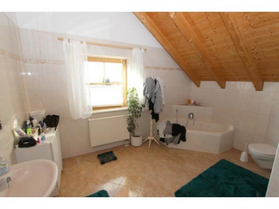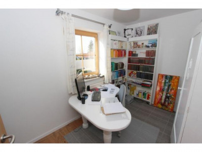 Das charmante Anwesen wurde 2001 in solider Ziegelbauweise auf einem ca. 400 m² großen Grundstück errichtet. Es verfügt über fünf liebevoll eingerichtete Zimmer (ein Wohn- und Esszimmer, ein Büro, drei Schlafzimmer), ein Bad, ein Gäste-WC mit Dusche, eine Küche sowie eine sonnige Terrasse und bietet mit seinen 128 m² Wohnfläche ausreichend Platz für eine mehrköpfige Familie. Der schön eingewachsene Garten ist nach Süden ausgerichtet und sorgt für abwechslungsreiche Freizeitgestaltung aller Bewohner. Ein Gartenhäuschen ist ebenfalls vorhanden. Zum Haus gehört ein Carport mit zwei Stellplätzen.Beheizt wird das Haus mit einer Stückholz-Zentralheizung mit Solaranlage für Warmwasserunterstützung. Bedarfsausweis, 144 kWh/(m²*a).EG: Das sonnige mit Laminat ausgelegte Wohnzimmer ist durch die Süd- und West-Ausrichtung hell und verfügt über Zugang zum sonnigen Garten. In diesem Raum befindet sich ein schöner Holzofen, der an kalten Wintertagen für kuschelige Wärme sorgt. Die moderne Wohnküche ist zum Wohnzimmer offen und ist mit einer hochwertigen Einbauküche Firma Schüller mit elektrischen Geräten (Herd, Cerankochfeld, Geschirrspülmaschine, Kühlschrank) ausgestattet. Ein weiteres Zimmer in dieser Etage ist mit Parkett ausgelegt und kann z.B. als Arbeitszimmer oder bei Bedarf als Gästezimmer genutzt werden. Das raumhoch hell geflieste Gäste-WC verfügt über eine Dusche. DG: In dieser Etage befinden sich insgesamt 3 mit Echtholzparkett ausgelegte Zimmer sowie ein geräumiges Dusch- und Wannenbad mit Fenster. Zwei Zimmer sind nach Süden ausgerichtet und verfügen über Zugang zum Südbalkon. Das modern ausgestattete Dusch- und Wannenbad ist hell gefliest und verfügt über eine Eckbadewanne. UG: In dieser Etage wurden folgende Räume untergebracht: ein Hobbyraum, ein Wasch- sowie ein Heizkeller. Der Hobbyraum ist beheizt und besitzt, dank eingebauter Tageslichtfenster, normale Wohnqualität. Bei Bedarf könnte man diesen Raum als weiteren Wohn-Schlafraum nutzen. Der Waschkeller verfügt über einen Waschmaschinenanschluss sowie weitere Anschlüsse für eine Dusche und zwei Waschbecken.