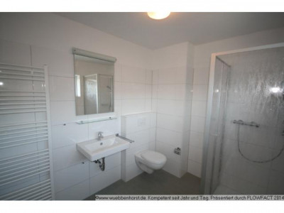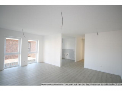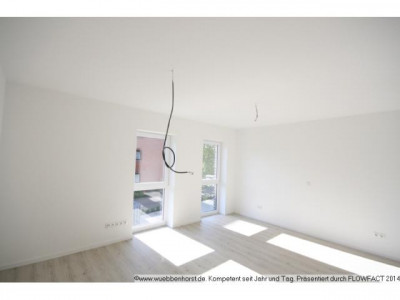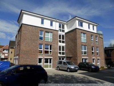 3-Zimmer-Wohnung im 1. Obergeschoss eines modernen 11-Familienhaus, welches Kellergeschoss, Erdgeschoss, 2 Obergeschosse und Staffelgeschoss enthält. Das Gebäude verfügt über einen Fahrstuhl, der alle Etagen erschließt.Raumaufteilung:Wohnzimmer mit offenem Küchenbereich, Schlafzimmer, Kinder-/Arbeitszimmer, Vollbad mit WC, Duschbad mit WC, Diele, Abstellraum mit Waschmaschinenanschluss und West-Balkon.Die Wohnfläche beträgt etwa 96,3 m².Zu der Wohnung gehören ein privater Kellerraum (ca. 6,2 m²), ein eigener Pkw-Stellplatz sowie das Mitbenutzungsrecht an den gemeinschaftlichen Rämulichkeiten (Wasch- und Trockenraum im Keller sowie Fahrrad- und Mülltonnenabstellplätze). Die Wohnung ist an die gemeinschaftliche Gegensprech- und Türöffnungsanlage angeschlossen.