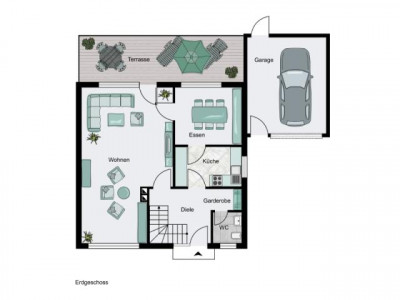 Optimal geplantes Einfamilienhaus mit Vollkeller und großer Garage mit ausreichend Platz für Fahrträder und Geräte. Der wirtschaftliche Grundriss bietet im Erdgeschoss ein Wohnzimmer mit Kaminecke, große Terrasse, Esszimmer, Küche, Diele mit Garderobe und Gäste WC. Im Dachgeschoss sind das Schlafzimmer, 3 Kinderzimmer, Flur und Bad mit Dusche, Wanne und WC. Der Keller bietet Platz für Hobby, Party, sowie Lagern, Waschen und Trocknen. Die Gartenfläche ist mit einer Rasenfläche angelegt.