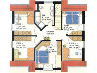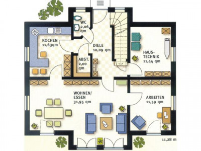 Eindrucksvoll beweist Classica 154, dass sich auch ohne Keller komfortabel Wohnen lässt. Nicht zuletzt dank moderner Haustechnik, die nur äußerst wenig Platz beansprucht. Dies schafft Raum für spannende Geometrie: Außen formt der beidseitige Zwerchgiebel eine klare Parellelstruktur und innen besticht Classica 154 durch das großzügige und vielfältige Raumangebot.Classica 154 zeigt sich in seiner Gleichschänkeligen Geometrie betont bodenständig. Ebenso überzeugend vermitteln die klaren Strukturen aber auch Aufgeschlossenheit und Sinn für Wohnen mit Stil. Gut, dass es bei Classica 154 so viel Raum gibt, seine Vorliebe nach eigenem Geschmack zu variieren.Freiraum in jeder Ecke. Wo Sie Ihren Lieblingsplatz an der Sonne wählen, ist bei Classica 154 fast schon egal: Die beiden Zwerchgiebel bilden an jeder Traufseite einladende Nischen.Energieeffizienzklasse B. Der Energiebedarf liegt zwischen 50 und 75 KWh/m²/Jahr. Für jeden geplanten Haustyp ermittelt sich ein eigener Energiewert, abhängig von der Ausrichtung des Hauses, Fensterflächen etc.